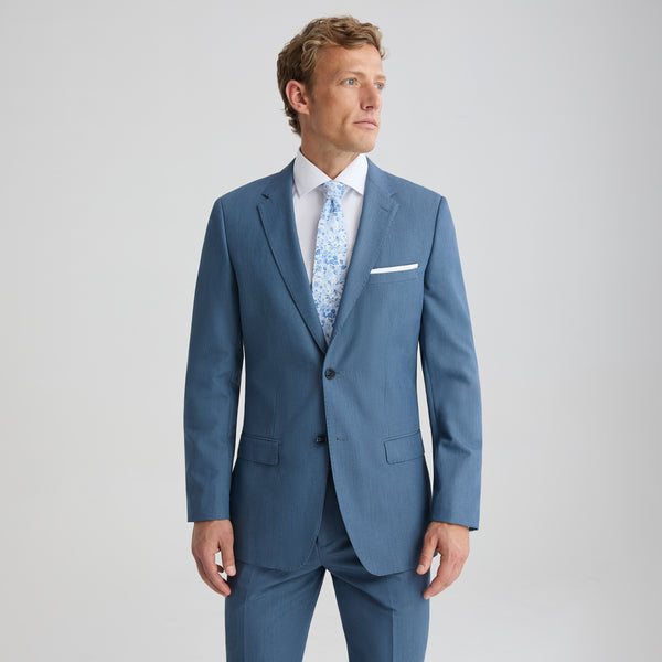 Men's Linen-Look Chambray Blue Suit Jacket