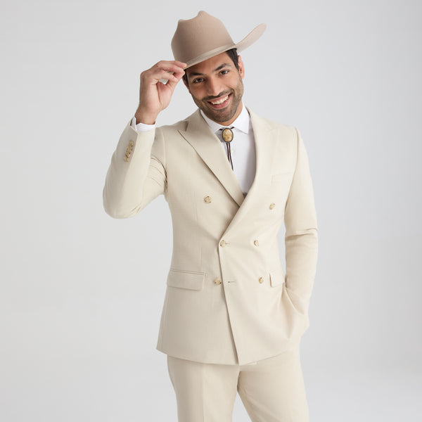 Men's Tan Double Breasted Suit Jacket