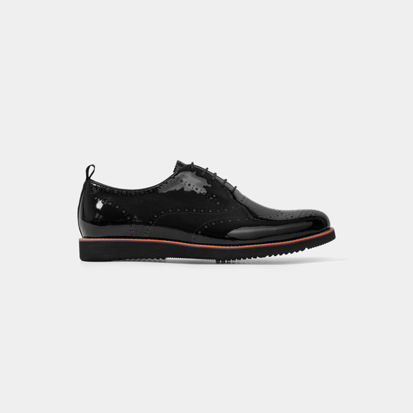 Oscar Black Patent Leather Wholecut Brogue Sneakers